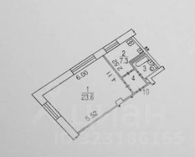 жилая площадь 23,6 кв.м., кухня 7,3 кв.м.