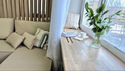 Вместительный встроенный шкаф, широкие деревянные подоконники,