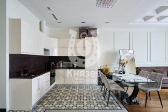 В квартире имеется вся необходимая мебель и техника. Кухонный гарнитур оборудован варочной панелью, духовым шкафом, посудомоечной машиной, встроенным холодильником и вытяжкой.