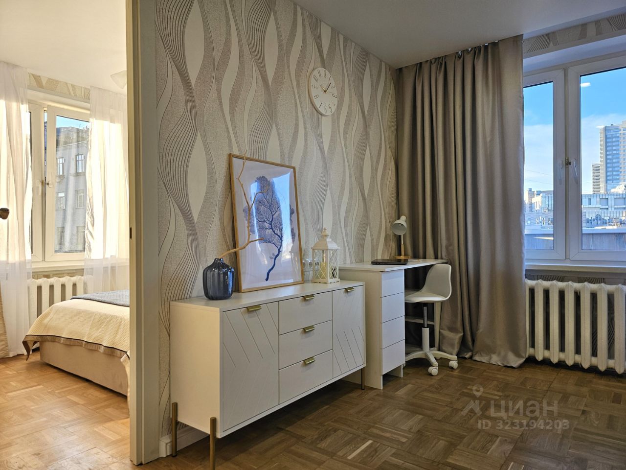 Квартира после евроремонта, что дарит свежесть и современный стиль. В комнатах и на кухне есть вся необходимая мебель, а в ванной комнате установлена ванна. Окна выходят во двор, поэтому в квартире тихо и спокойно. В вашем распоряжении также будет балкон. Из техники в квартире есть холодильник, телевизор и стиральная машина. Высокие потолки 2.64 метра создают ощущение простора.