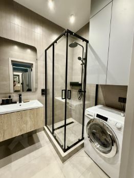 В квартире сделан косметический ремонт, что позволяет вам сразу заехать и жить с комфортом. Обстановка включает всю необходимую мебель как на кухне, так и в комнате. В квартире есть вся современная техника: кондиционер, холодильник, посудомоечная и стиральная машины, телевизор. Санузел совмещенный, оборудован душевой кабиной.
