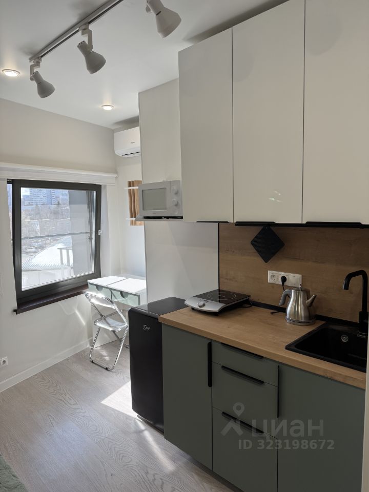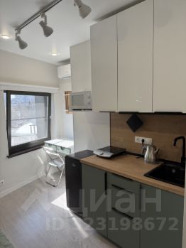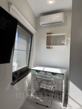 В студии диван с ортопедическим матрасом( аскона), большой шкаф купе, рабочий стол, кухонный стол, стулья, кондиционер, холодильник, плита, вытяжка,свч, стиральная машина.