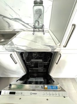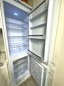 Квартира оборудована качественным кухонным гарнитуром и бытовой техникой: двухкамерный холодильник, эл.плита, вытяжка, посудомоечная машина, стиральная машина, в каждой комнате кондиционеры. В коридоре установлен вместительный встроенный шкаф (до потолка). Санузел оснащен новой, современной сантехникой и множеством мест для хранения.