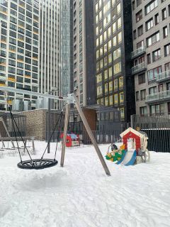 Панорамный вид из окна, внутренний двор с детскими площадками, магазины, кафе, аптеки, торговые центры, банки, музеи, выставочные комплексы.