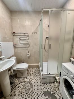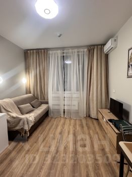 В квартире есть все необходимое для комфортного проживания. Просторная комната с мебелью, оборудованная кухонная зона, а также техника: кондиционер, холодильник, телевизор и стиральная машина. Высокие потолки (2.9 метра) и окно во всю стену создают ощущение простора. Ванная комната оснащена современной душевой кабиной.