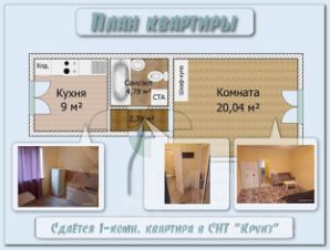 Комната 20 м.кв., кухня 8 м.кв., общая площадь 34 м.кв.