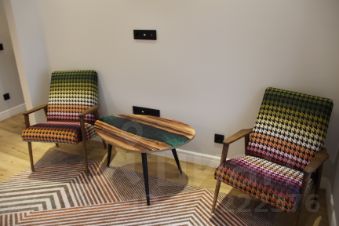 Винтажные кресла и дизайнерский стол в гостиной зоне добавят уюта во время общения с друзьями. Раскладывающийся диван поможет с комфортом отдохнуть гостям, оставшимся на ночь.