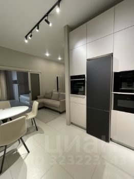 Функциональное планировочное решение квартиры включает в себя кухню-гостиную с выделенными зонами приготовления пищи и отдыха. Кухня укомплектована всей необходимой бытовой техникой.