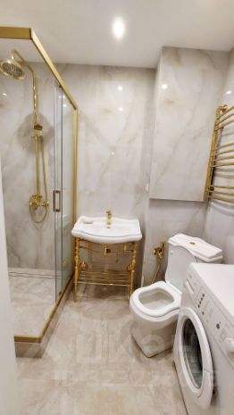 В квартире есть всё необходимое для комфортного проживания (мебель обсуждаема). Имеется холодильник, посудо-моечная машина, стиральная машина. Кондиционеры в комнатах. Планировка продумана до мелочей, и даже есть лоджия застекленная и утепленная во всю длину квартиры (выходы на лоджию из обоих комнат), где можно организовать дополнительное место для отдыха, работы или хранения вещей. Санузел в идеальном состоянии, выполнен в современном стиле. Теплый пол в кухне, корридоре, лоджии и в санузле. Использованы дорогие импортные материалы при ремонте, а также установлена дорогая сантехника.