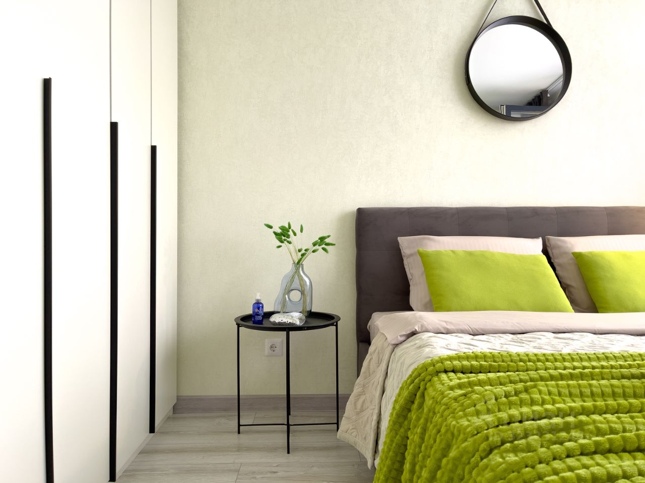 В любое время суток в спальне можно создать ночное затемнение за счёт штор блэкаут.