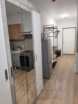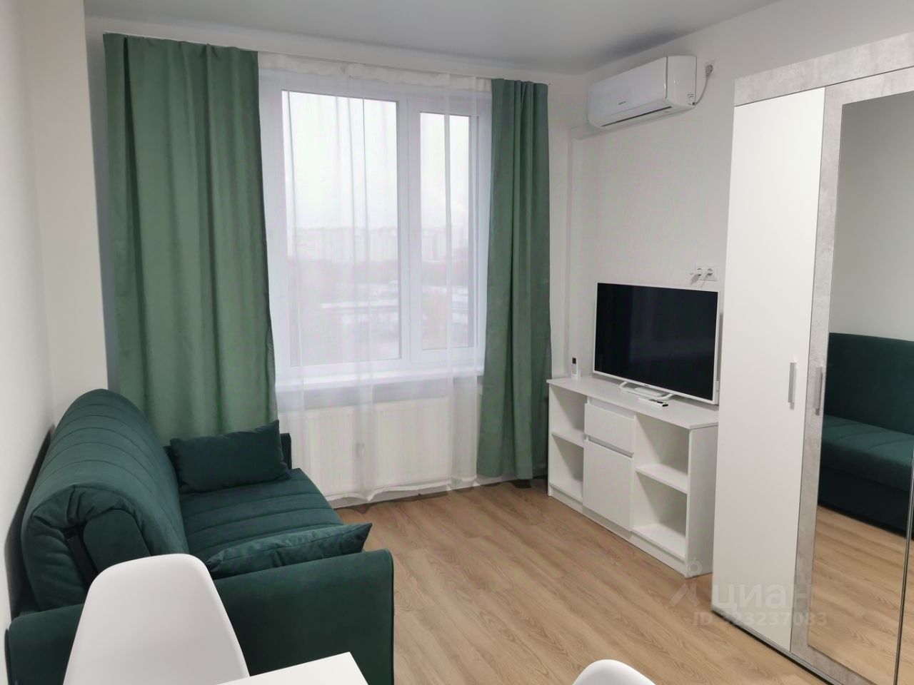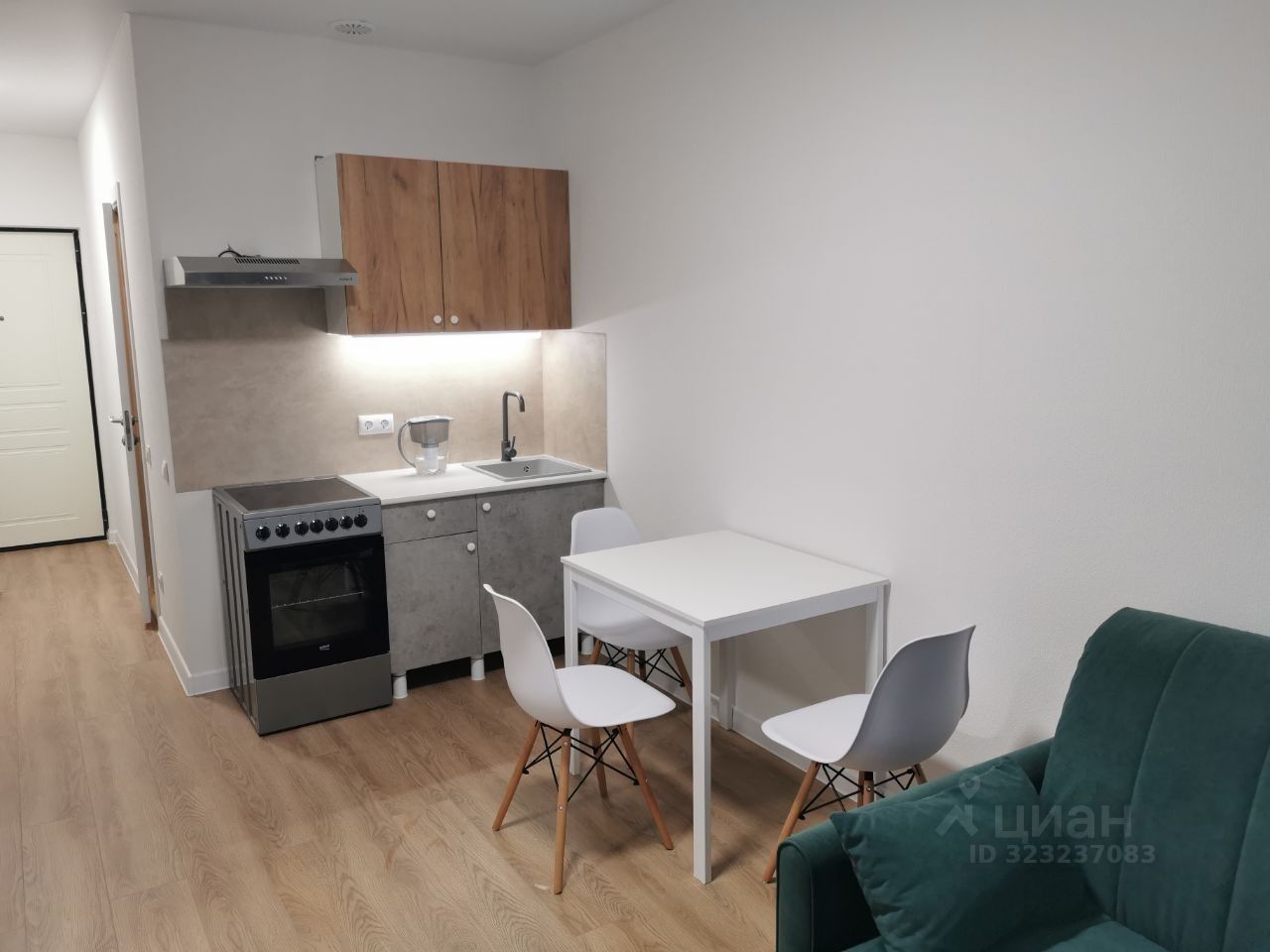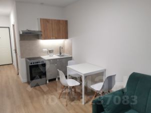 В квартире есть современная мебель на кухне и в комнате.
