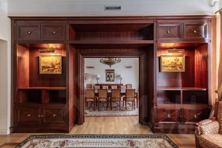 - Гостиная и столовая разделены раздвижными дверьми. Стоит их открыть и комнаты превращаются в единое пространство