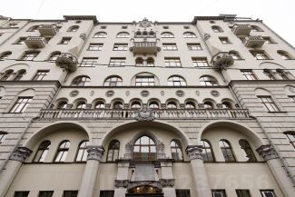Дом привлекает внимание своим роскошным фасадом с элементами модерна и арт-деко.