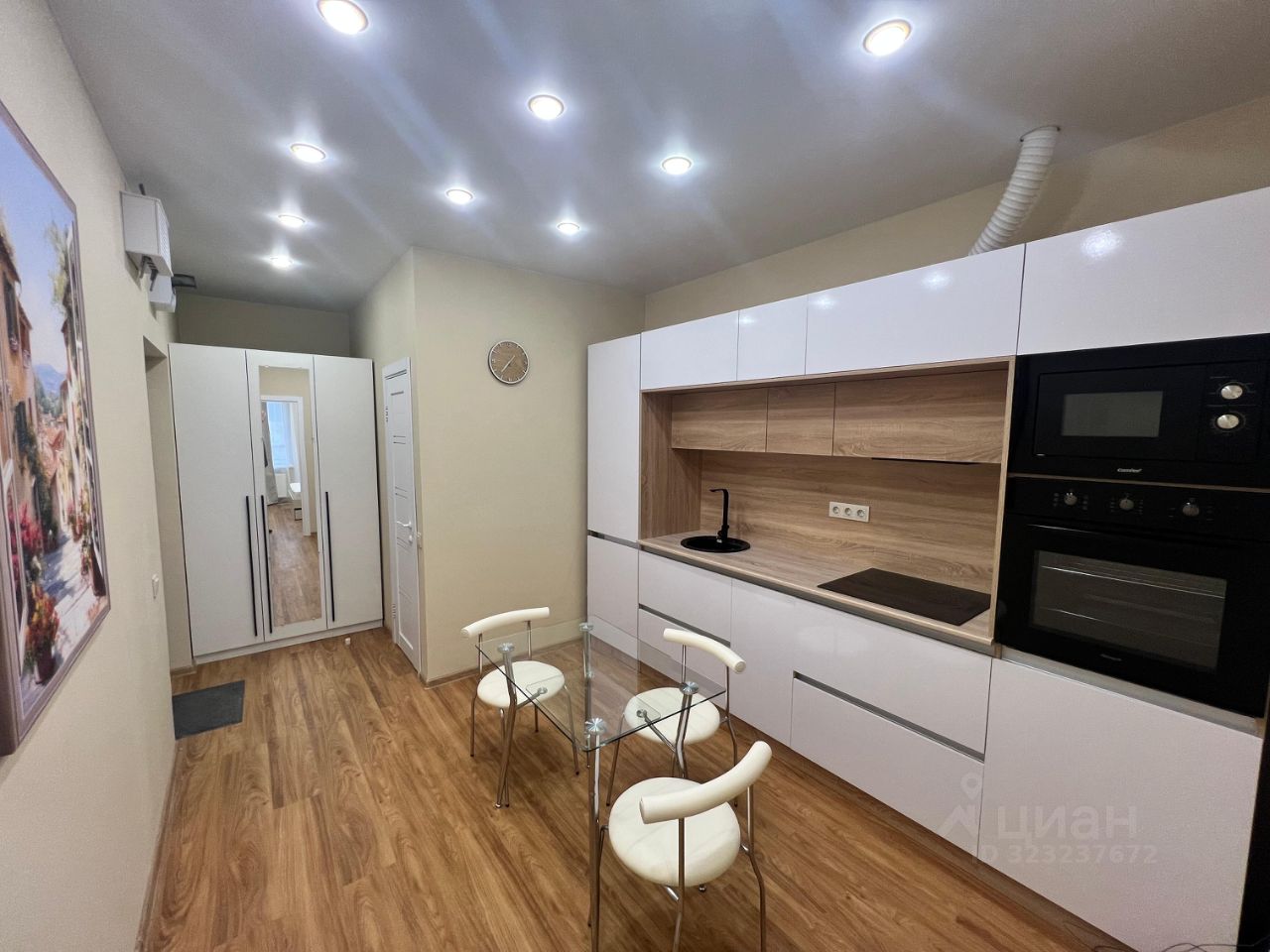 Полностью оборудованная кухня. Варочная панель, шкафы, встроенный холодильник, встроенная микроволновая печь. Все новое сдаётся впервые! Всё необходимое для комфортного проживания. Развитая инфраструктура, рядом расположены все необходимые магазины: в доме бассейн, фитнес-клуб, охрана, видео наблюдение, кафе, рестораны, магазины, салоны красоты, высокий уровень сервиса.