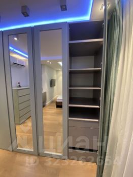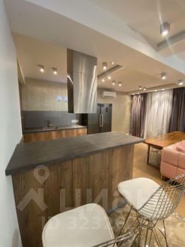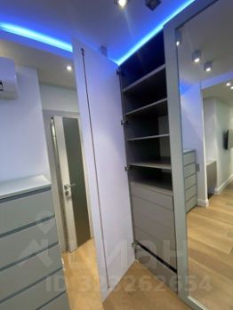 В квартире выполнен современный дизайнерский ремонт, который позволяет каждому жильцу создать уникальный интерьер с помощью личных предметов. Просторный санузел с душевой зоной и постирочной зоной, где установлены стиральная и сушильная машины, добавляет удобства в повседневную жизнь. Гардеробная в прихожей разделяет спальную и общую зоны, обеспечивая дополнительное пространство для хранения.