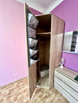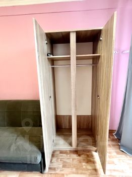 В комнате и на кухне есть необходимая мебель и техника: два вместительных платяных шкафа, комод, двуспальный раскладывающийся диван, стиральная машина, холодильник, свч.