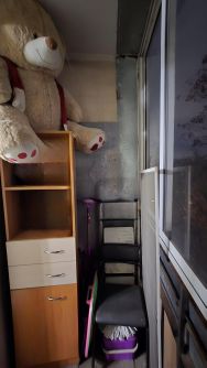 В квартире две лоджии (в каждой комнате), одна из которых застеклена.