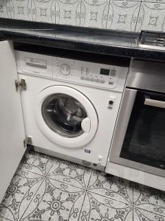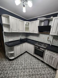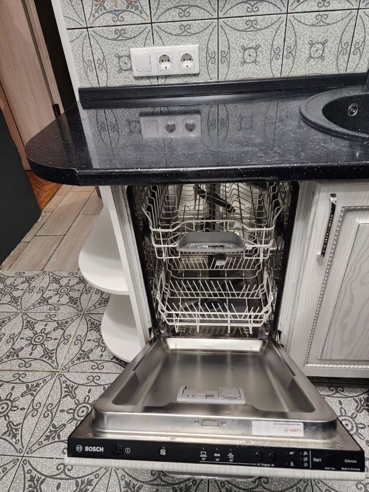 В квартире есть вся необходимая техника для комфортного проживания: холодильник (на фото отсутствует, но будет приобретен собственником в ближайшие дни), посудомоечная и стиральная машины, газовая варочная плита и духовка, а также вытяжка. Мебель для кухни - стол и стулья собственник также готов приобрести.