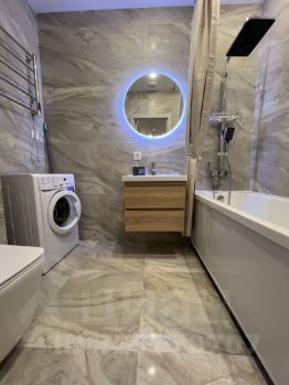 Уютная, светлая и просторная однокомнатная квартира с большой кухней-гостиной. Свежий ремонт (окончание ремонта - октябрь 2025 года). Квартира оборудована всем необходимым: стиральная и посудомоечная машины, кондиционер, плита, духовка, холодильник. В комнате двуспальная кровать (140см), шкаф. В кухне-гостиной - диван, полки для хранения вещей, кухонный гарнитур. Все, что находится в квартире - новое. Окна выходят на улицу (на парковку). 5 этаж - удобно. Тихие , приветливые соседи.