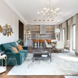 Дизайнерская квартира 115 м² в элитном комплексе Большая Полянка 44 с подземным паркингом и видом на 2-й Спасоналивковский переулок.