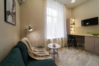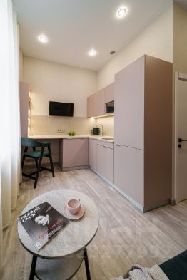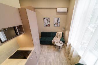 Удобный раскладной диван трансформируется в полноценное спальное место (130 х 200). Есть рабочая зона, где можно расположиться с ноутбуком, книгой или конспектами. В студии проведен домашний интернет+ТВ. Телевизор поддерживает функцию Smart TV.