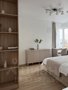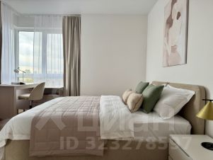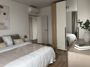 Спальня очень светлая с гардеробными шкафами, комодом, двуспальной кроватью и рабочим местом. Окно угловое на восток и юг. Шторы блэк-аут. Кондиционер (сплит - система).