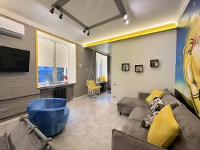 Предлагаем на срок от одного месяца уютную двухкомнатную квартиру, авторский дизайн которого принадлежит художнице, что проявилось в её эклектичном стиле с множеством предметов интерьера.