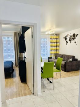 В квартире сделан качественный евроремонт. Интернет уже подключен, только оплатить. Просторная кухня-гостиная площадью 21 кв. м полностью меблирована и оснащена всей необходимой техникой: холодильник, кондиционер, тостер, СВЧ, чайник электрический, телевизор в спальне , стиральная машина автомат в с/у— всё это к вашим услугам. В комнате также есть мебель, что позволит вам сразу же начать наслаждаться комфортом и уютом. Диван 2-х спальный , на случай , если нужно разместить гостей и не нарушить комфорт проживающих за счет отдельной спальни с 2-х спальной кроватью и комфортным матрасом с новым наматрасником. Санузел совмещённый, оборудован ванной, установлен бойлер, всегда будет горячая вода, даже летом, когда отключают горячую воду летом. Зеркало с подсветкой-дверка шкафа с полками для хранения. Полотенцесушитель электрический. Колонка Алиса позволяет голосом управлять кондиционером. Высота потолков составляет 2.7 метра, а окна выходят во двор, поэтому в квартире всегда тихо и спокойно.