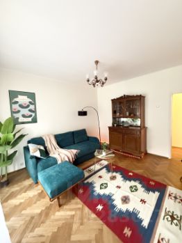 Светлый интерьер в легком модерн стиле с ретро-атмосферой и потолками почти 3 метра создающими особую ауру пространства.