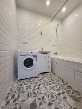 Квартира с евроремонтом, полностью готова к комфортному проживанию. В комнате и на кухне есть вся необходимая мебель. Из техники: холодильник, посудомоечная и стиральная машины, измельчитель пищевых отходов, микроволновая печь . В ванной комнате установлена ванна, что позволяет наслаждаться расслабляющими водными процедурами после долгого дня.