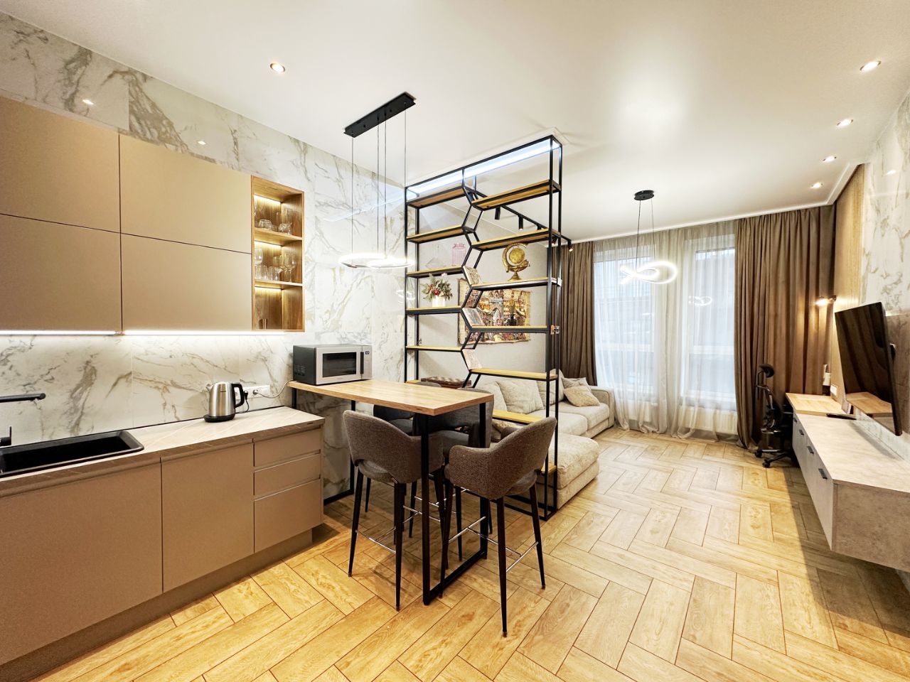 Без комиссии для арендатора. Предлагается в аренду квартира в ЖК Резиденция Архитекторов. Квартира с премиальным ремонтом, в идеальном состоянии, полностью оборудована всей необходимой мебелью и техникой для комфортного проживания, кухня со встроенной техникой, 2 больших телевизора со смарт ТВ, много мест для хранения, установлен кондиционер и теплые полы. Функциональная просторная планировка: изолированная спальня с застекленной лоджией и большая гостиная с кухней нишей. Высокие потолки 3,2 метра, окна выходят во внутренний двор, дорог не видно и не слышно.
