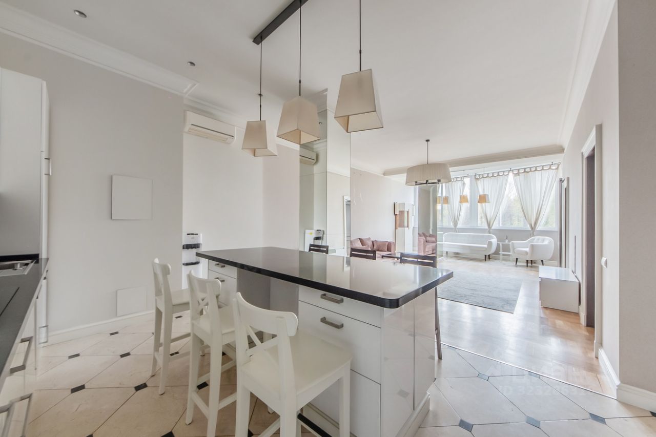 В квартире выполнен современный ремонт в Светлых тонах и с использованием натуральных материалов; в доме тихо и камерно, вид из окон на МГУ;