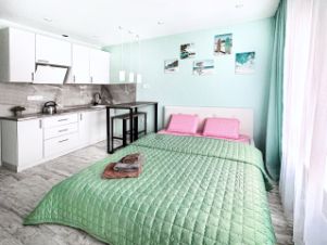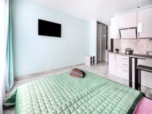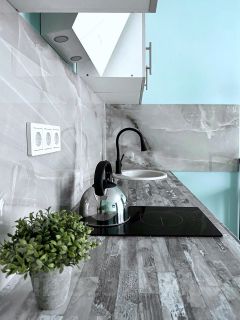 - Оптимальное оснащение всей необходимой техникой: высокоскоростной интернет, телевидение, варочная панель, холодильник, стиральная машина, чайник