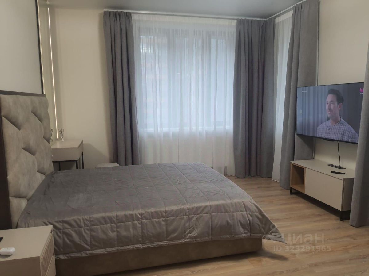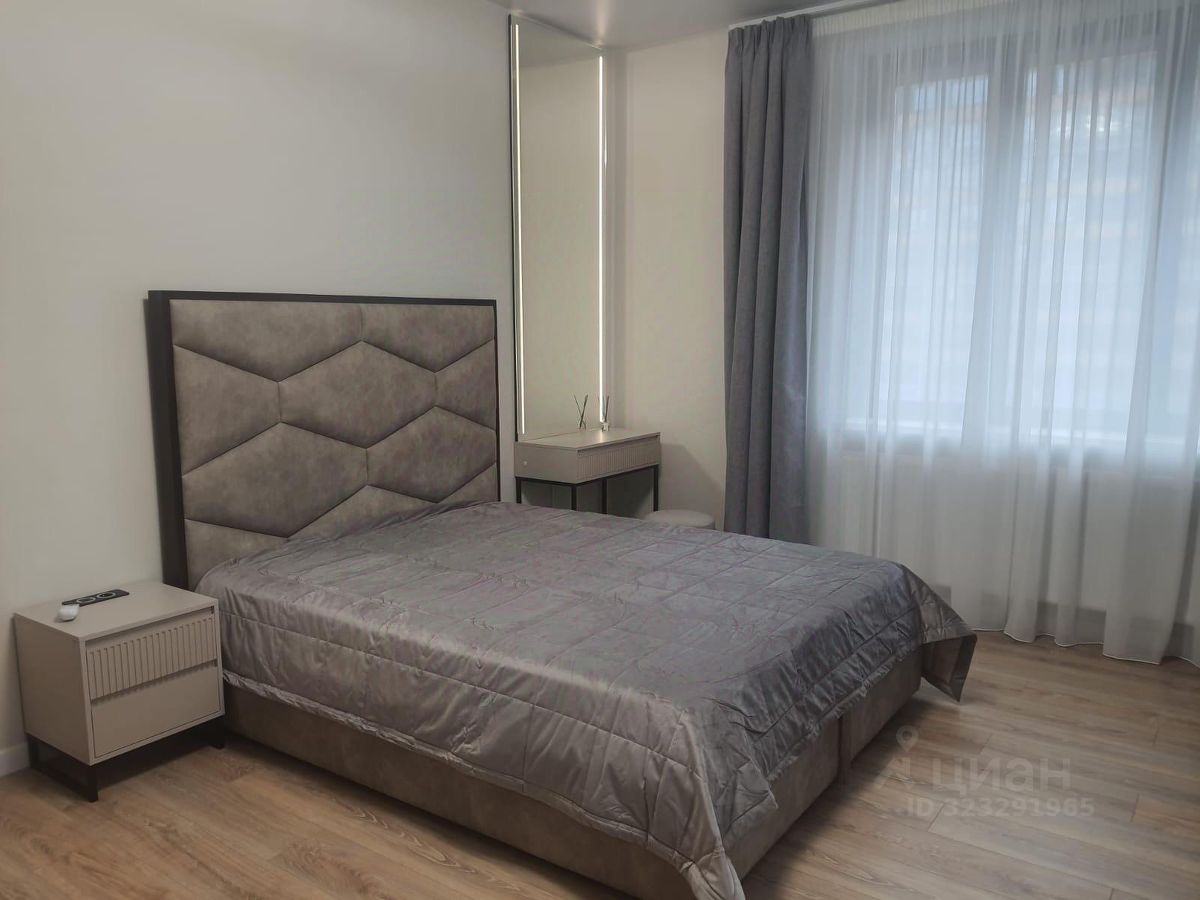 Квартира с дизайнерским ремонтом, полностью укомплектована мебелью и техникой: встроенная кухня от "Стильных кухонь", варочная панель, духовой шкаф, микроволновая печь, посудомоечная машина, вытяжка, холодильник, стиральная машина с сушкой, два телевизора, два кондиционера, кровать с ортопедическим матрасом и местом для хранения, рабочий стол, совмещенный санузел с ванной, несколько шкафов для хранения.