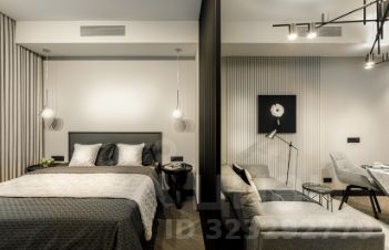 Зонирование - на гостиную с кухней столовой и зону спальни. Санузел  оснащен  душевой кабиной.
