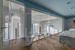 ID 43078. Свободна и показы после 03.11.2025. В аренду предлагается фантастически стильная и светлая двухуровневая квартира с пятиметровыми потолками и панорамными окнами в знаменитом небоскребе района Мосфильмовской. Квартира линейной планировки, окна ориентированы на юго - запад. Непосредственно при входе расположены: гостевой санузел и гардеробная комната с изолированной постирочной. Объединенная кухня-гостиная с 5-ти метровыми потолками и панорамными окнами в пол, из которых открывается захватывающая дух перспектива города. Здесь же, на первом уровне, планировкой предусмотрена мастер спальня с собственной ванной и гардеробной комнатами. На втором уровне разместилась еще одна спальня с ванной комнатой и удобными системами хранения, которая может стать детской или кабинетом, в зависимости от требований к функционалу. Окна панорамные, открываются невероятные виды на центр города. Премиальный ремонт, эксклюзивная отделка с применением дорогих материалов и брендов. Элегантные входные группы, функционирует полный комплекс безопасности (охрана, видеонаблюдение), организован подземный паркинг, автосервис и мойка. Можно арендовать машиноместо в подземном паркинге за дополнительную плату. В непосредственной близости расположены парк Воробьевы горы, Мосфильмовский пруд, легендарный музей Мосфильма, а также Московский гольф-клуб.