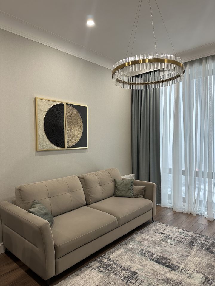 Сдаётся современная двухкомнатная квартира с евроремонтом в башне Виво. Общая площадь 47 кв. м, жилая площадь — 36 кв. м, кухня — 6 кв. м. Квартира находится на 35-м этаже 36-этажного дома, что открывает потрясающий вид на город. Высота потолков — 3.5 метра, создавая ощущение простора.