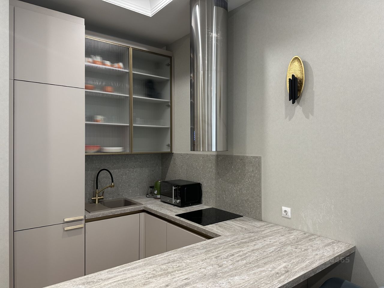 В квартире есть всё необходимое для комфортной жизни: кондиционер, холодильник, посудомоечная машина, телевизор и стиральная машина. Кухня и комната полностью меблированы, а в ванной комнате установлена душевая кабина. Планировка продумана до мелочей, поэтому можно использовать пространство максимально эффективно.