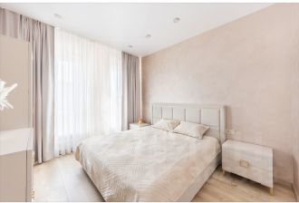 Квартира после евроремонта, с высотой потолков 2.95 метра, что создаёт ощущение простора. В квартире есть всё необходимое для комфортного проживания: холодильник, посудомоечная и стиральная машины. Окна выходят как на улицу, так и во двор, что делает квартиру светлой и уютной. Два отдельных санузла, один из которых оснащён душевой кабинкой.