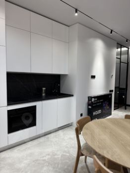 Выполнена новая дорогостоящая отделка в современном стиле с применением натуральных материалов по авторскому проекту, квартира меблирована и оснащена функциональной бытовой техникой, современными высококлассными инженерными системами (приточно-вытяжная вентиляция, кондиционирование), в санузлах установлена сантехника премиум-класса.