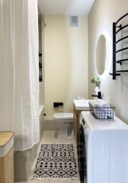Бытовaя тeхникa: cтиpaльная машинa, утюг, холoдильник, духoвой шкaф, варочная панель, вытяжка, микроволновая печь, посудомоечная машина, кондиционер, а так же все необходимое для комфортного проживания.