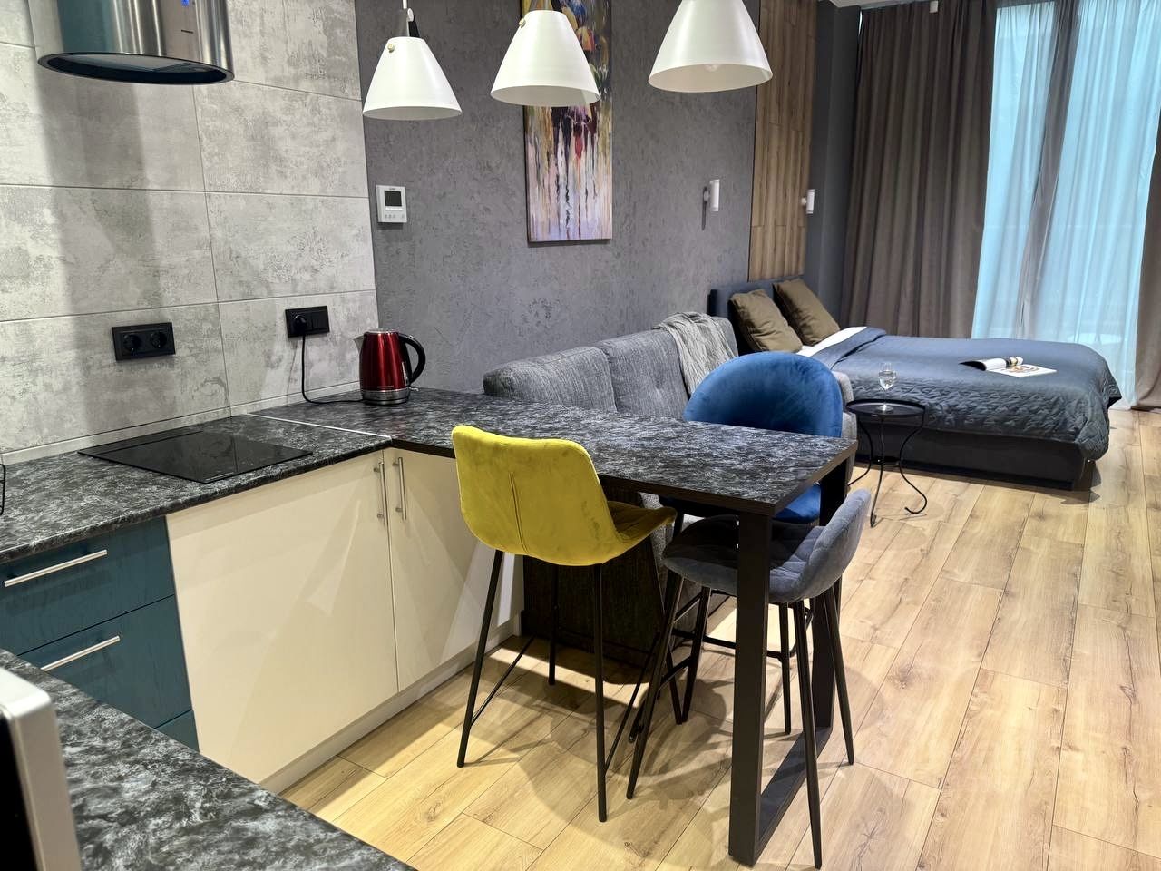 Для вашего комфорта: двуспальная кровать с ортопедическим матрасом и диван-кровать.