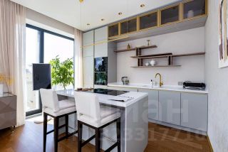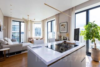 Общая площадь составляет 86 кв. м, а кухня впечатляет своими панорамными видами на Москву!