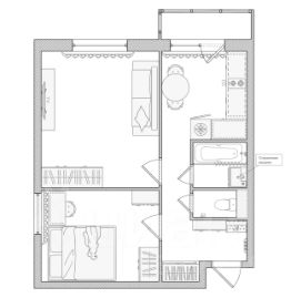 - раздельный санузел (ванна, стиральная машина, зеркало с подсветкой)