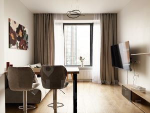 В аренду на длительный срок предлагается стильный апартамент, расположенный в новом комплексе "Новоданиловская 8". Качественный ремонт в современном стиле. Просторная студийная зона, встроенный кухонный гарнитур оборудован всей необходимой бытовой техникой Haier, включая посудомоечную машину. Барная стойка. Диван кровать. Очень большая ЖК-панель с функцией Smart-TV. Изолированная спальня: двуспальная кровать, вместительный шкаф. Санузел совмещенный: ванна. 2 кондиционера. Окна выходят в сторону набережной, прекрасный панорамный вид на реку и город. Круглосуточная охрана, видеонаблюдение. Консьерж. Благоустроенная придомовая территория. Кофейни, аптеки, магазины функционируют. Подземный паркинг - аренда машиноместа дополнительно.