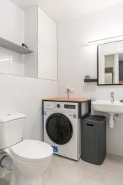 В спальне: удобная кровать с хорошим жестким матрасом; тёмные шторы; вместительный шкаф. Будете высыпаться после трудового дня.