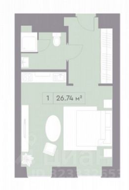 ПЛАНИРОВКА КВАРТИРЫ: квартира-студия общей площадью 27 кв.м, санузел совместный, душевая кабина, БЕЗ БАЛКОНА, высота потолков более 3 метров