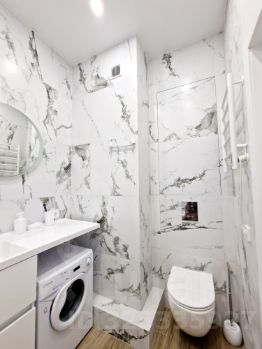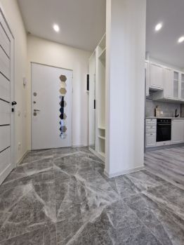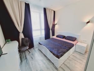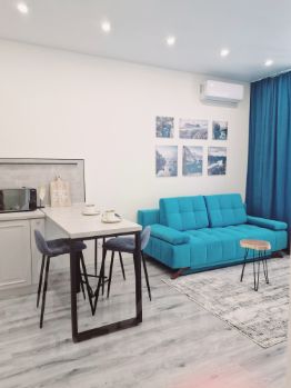 В квартире есть вся необходимая мебель, в каждой комнате кондиционер, стиральная машина, микроволновка, холодильник, духовой шкаф, варочная панель.