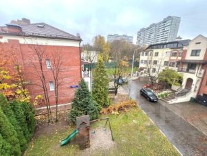 Функциональная планировка. Цокольный этаж: бассейн-купель, сауна, гараж на 2 автомобиля. 1 этаж: гостиная-столовая с камином, изолированная кухня, гостевой санузел, холл. 2 этаж: изолированная спальня, спальня со смежной дополнительной комнатой (может быть использована как кабинет или гардеробная комната), гардеробная, санузел, выход на балкон. 3 этаж: три спальни (одна спальня с балконом), 2 санузла. Квартира-таунхаус предлагается практически без мебели (частичная меблировка). Встроенная кухня укомплектована всей бытовой техникой известных европейских брендов. Новый качественный ремонт.