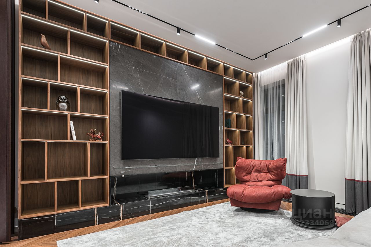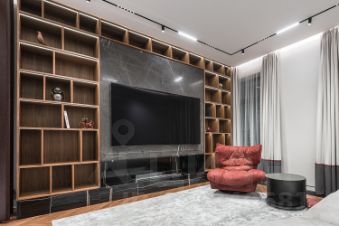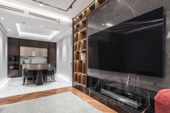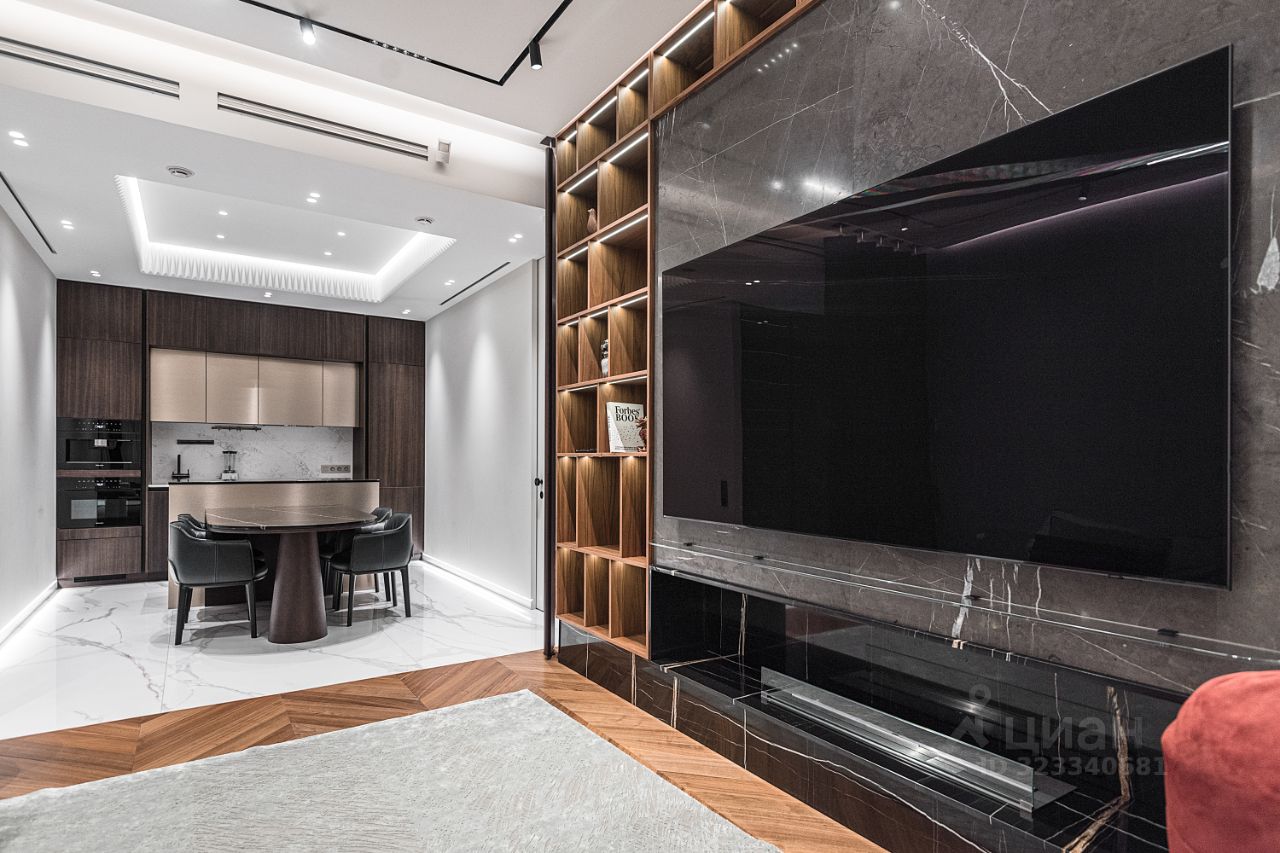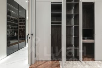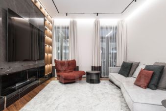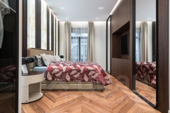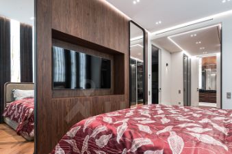 Выполнен дизайнерский ремонт. В санузлах установлена немецкая люксовая сантехника. Эксклюзивное покрытие потолков в мастер-зоне и холле. Шкафы из стекла и натуральной кожи, ТВ за черным стеклом в мастер с/у, техника премиум-класса, мебель Baxter, Minotti,